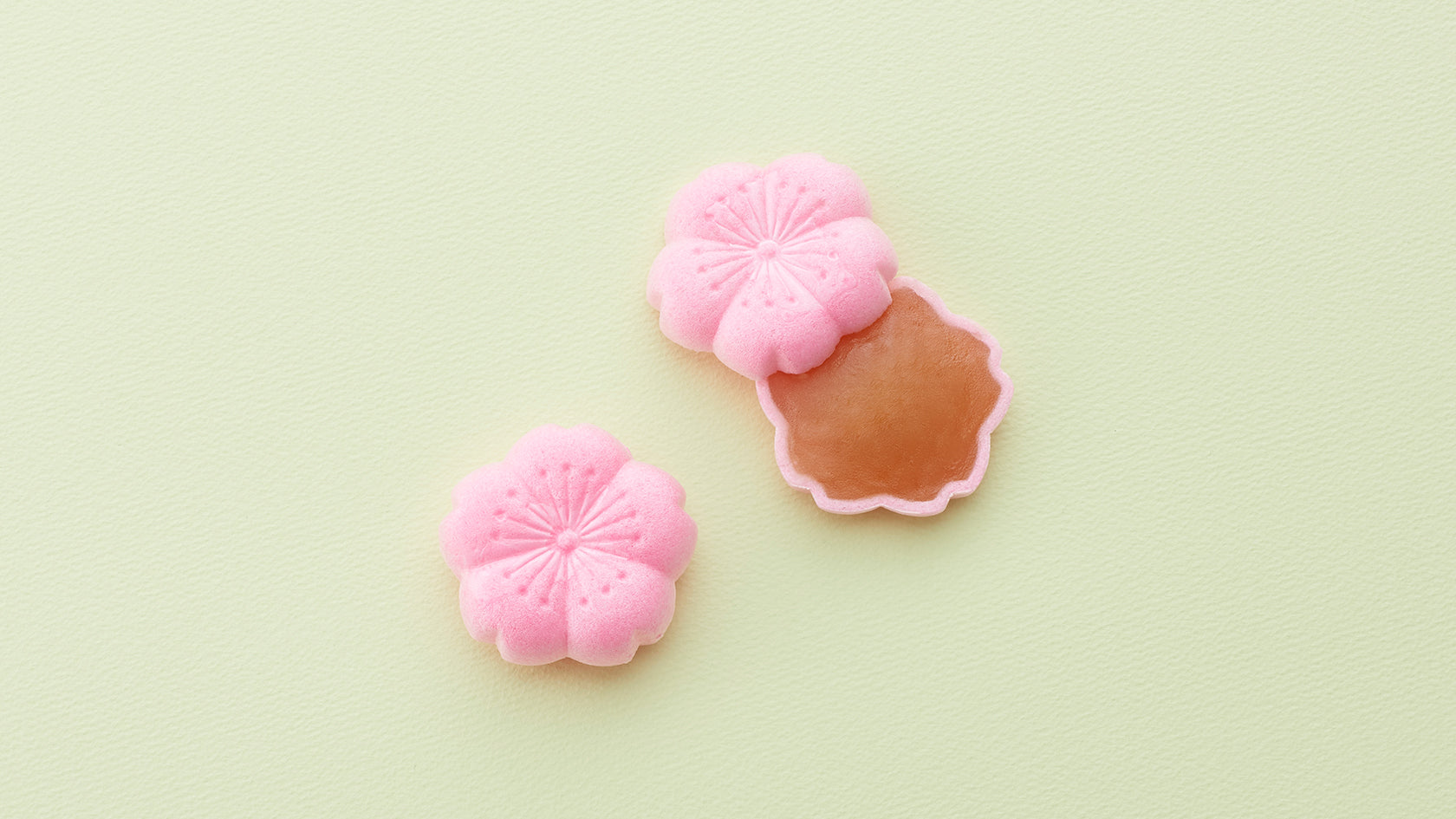 Pink wafers symbolizing cherry blossoms, filled with white bean paste. The auspicious name carries a wish for an era of lasting peace.