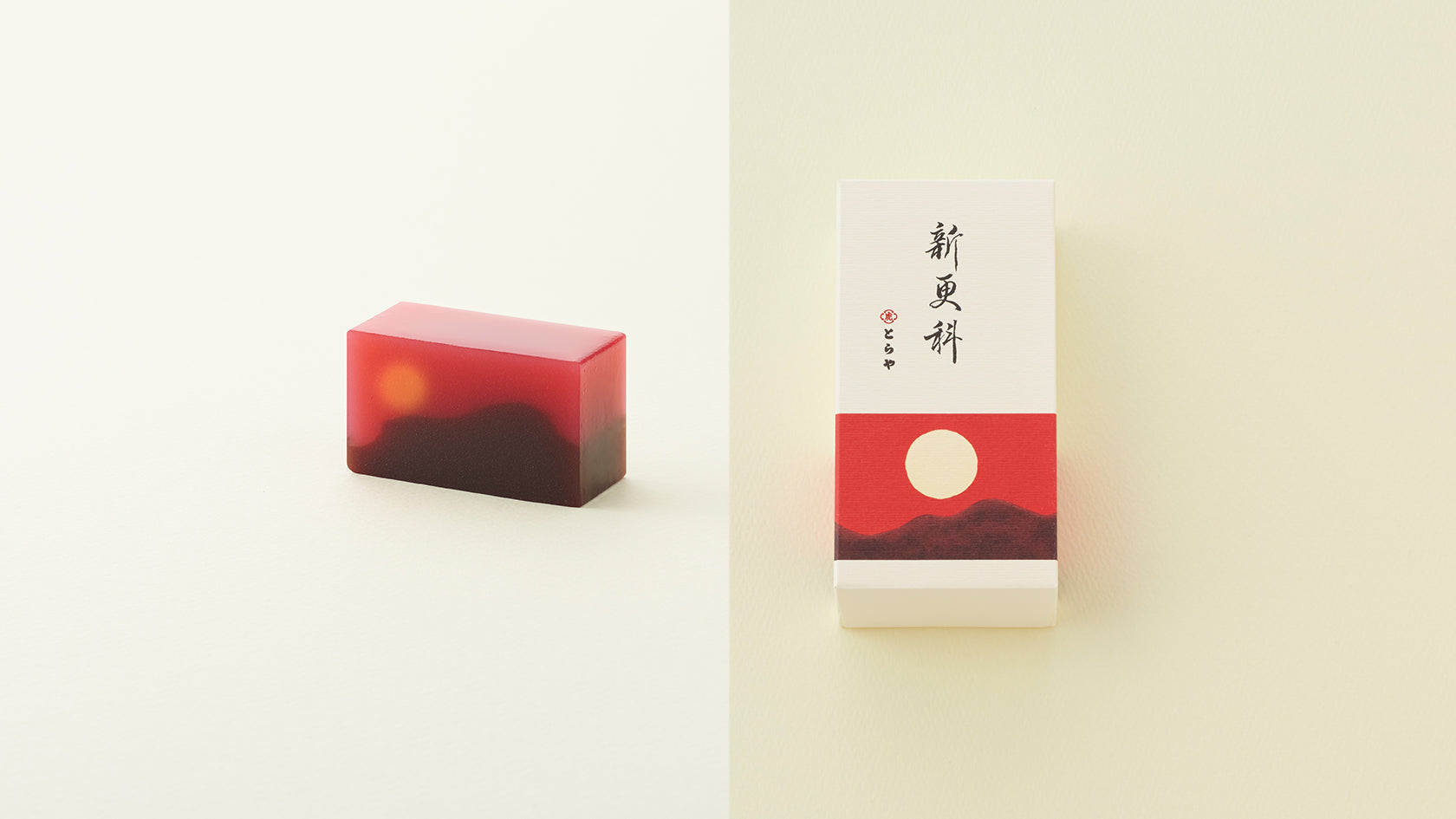 Moon-viewing is a popular autumn custom in Japan, and one famous spot is Sarashina in northern Nagano Prefecture. Almost too beautiful to eat, this yokan whisks you to Sarashina to enjoy the gorgeous autumn full moon gracing the sky above the mountains. The bright moon and sky, made from gelled white bean paste, shine down on the dark mountains made from gelled azuki bean paste.