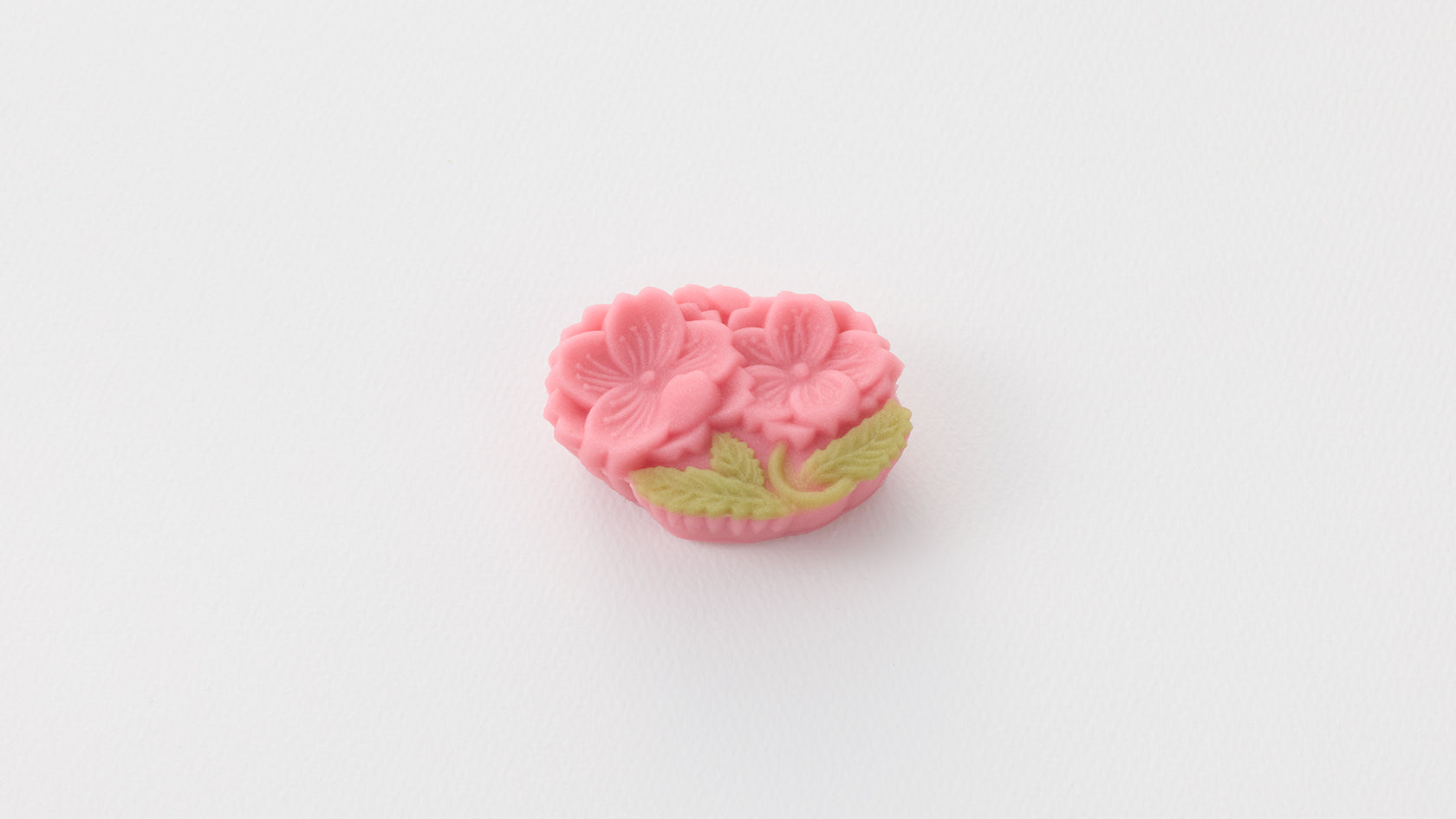 Spring in Japan means cherry blossoms, and this confection captures Japanese people's love for the flowers. White azuki bean paste is nestled inside a pink steamed bean paste and flour mixture, to which a touch of green mixture is added for the leaves. Placed in a wooden mold and pressed to shape, each item is lovingly and individually crafted by our artisans.
