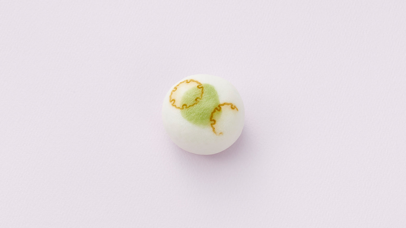 The uniquely light dough of this white steamed bun with whole azuki bean paste filling contains grated yam. Adorned with the marks of two snowflakes and a patch of green, it represents young grass peeking out from beneath a thin layer of snow.